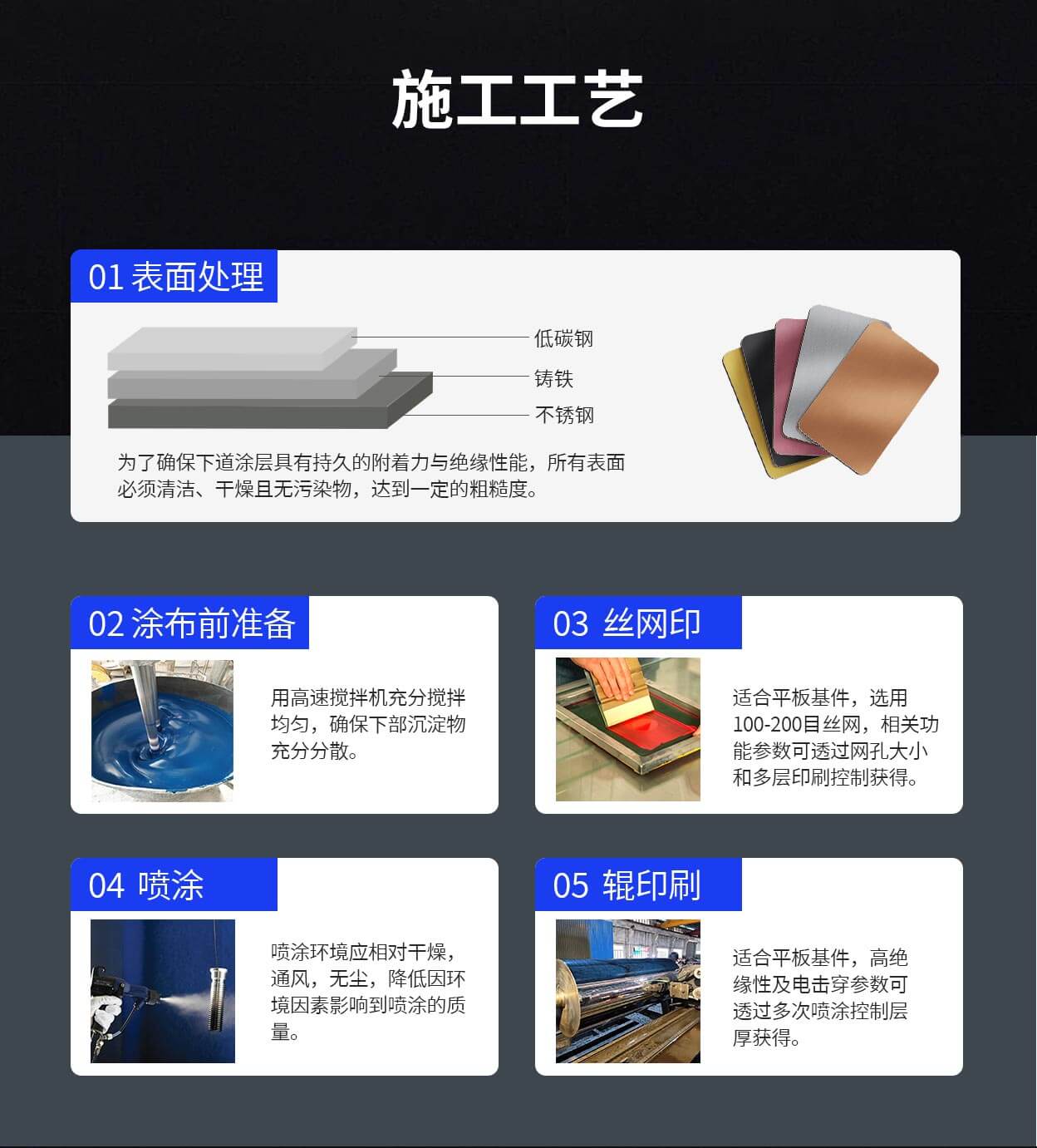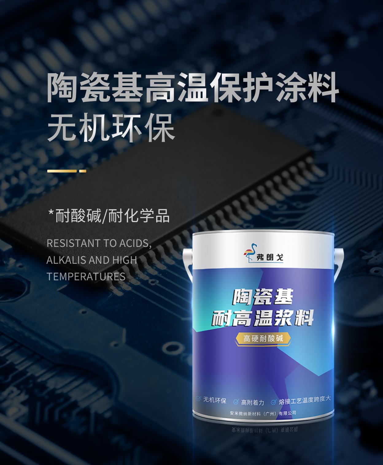 采用无机高温粘接剂作为成膜物,加入功能粉体作为功能介质,使用高温无机颜料以及少量的助剂材料,制备成适用于喷涂、刷涂、辊涂、浸涂及丝网印等工艺的功能性涂料产品。