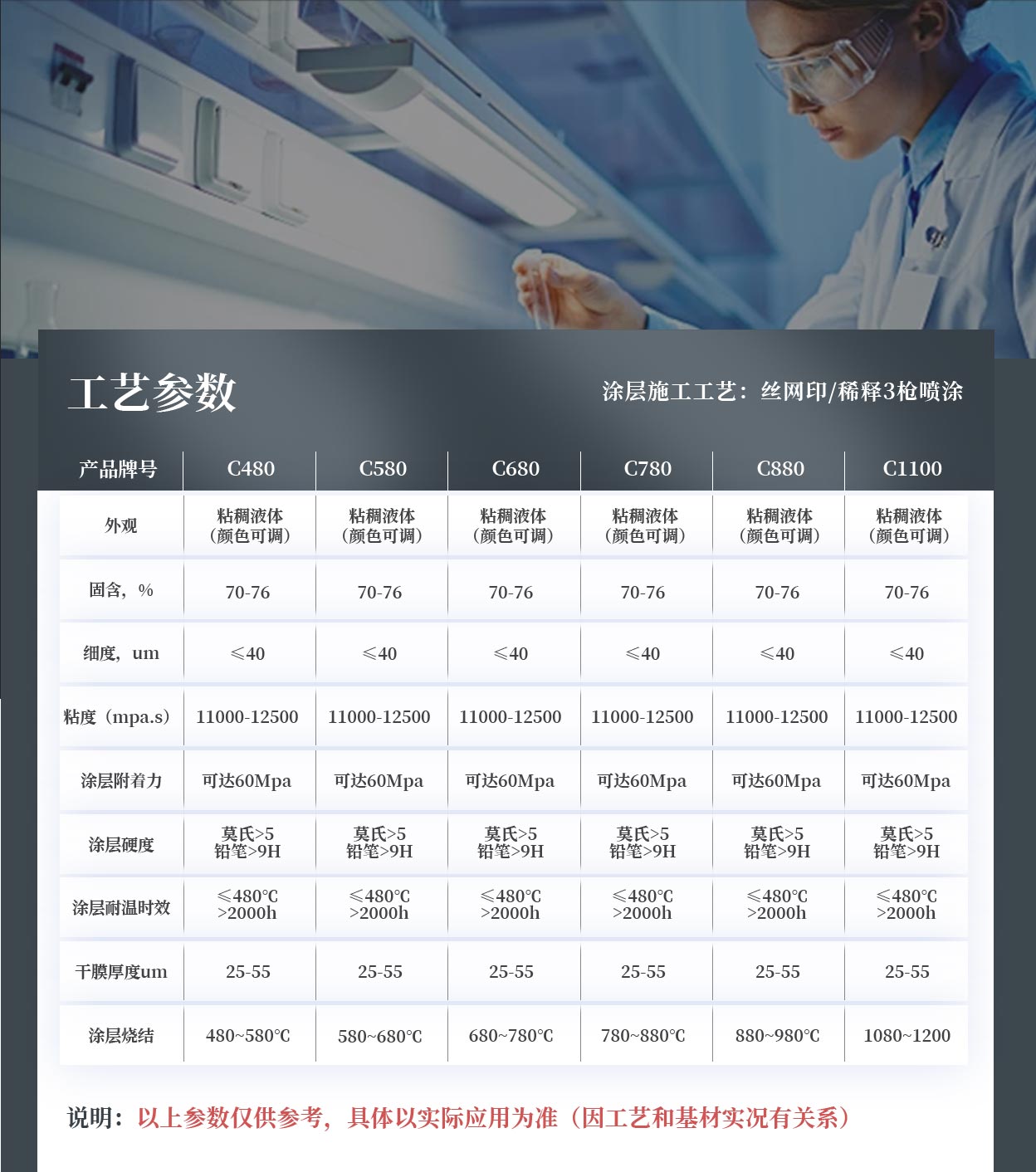 可施工在陶瓷基材料,通过高温熔接机理,实现涂层的耐高温、耐刮、耐酸碱、高硬度、高附着力及高耐候的功能需求。