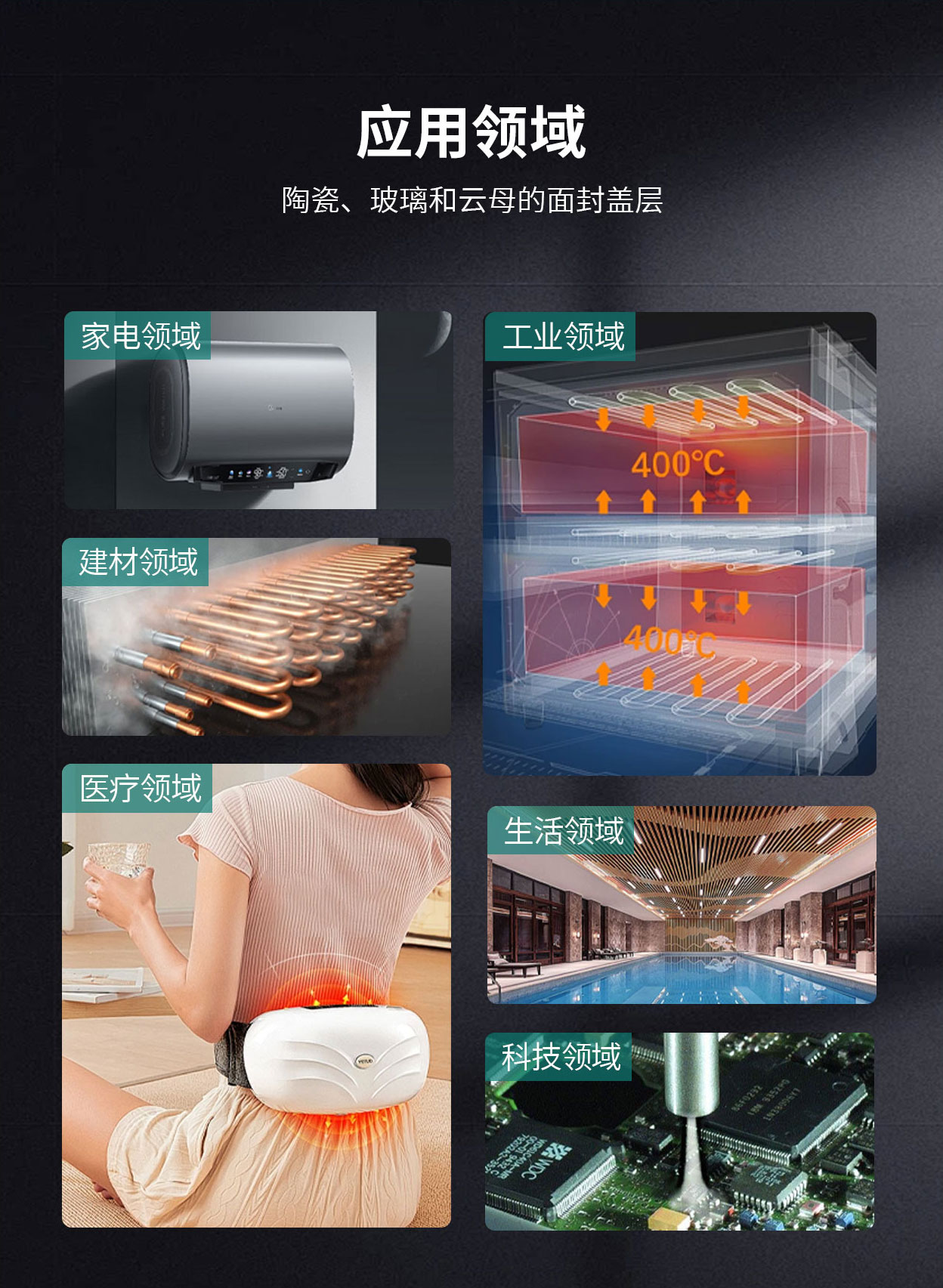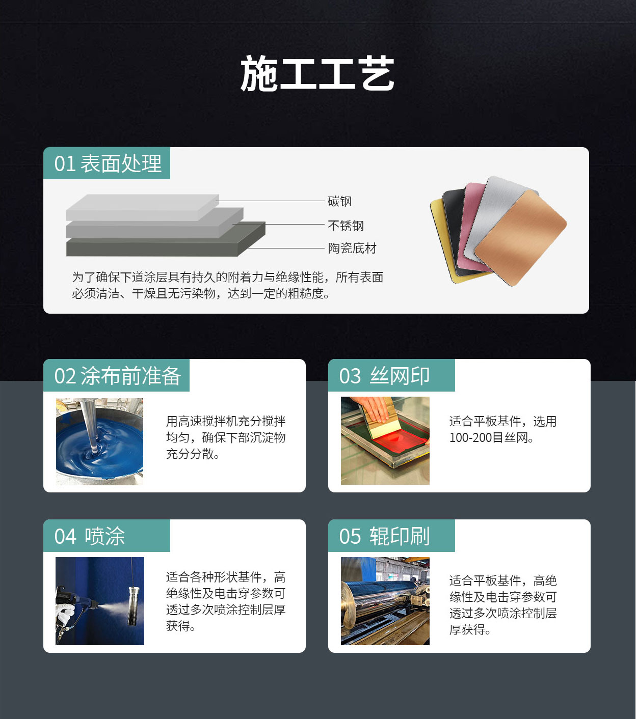 匹配施工在:烧结型石墨烯涂层、玻璃、陶瓷、金属绝缘层及云母片等基材上,通过高温熔接机理,实现材料的导电、屏蔽及静电功能。其电导方式同步可实现:网链式传导、隧道式传导和磁场式传导。
